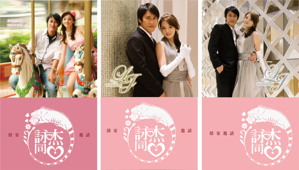 一開始其實有三種版本(以下示意圖),我最喜歡左邊的遊樂園照片,但長輩說不夠穩重而打槍(泣)