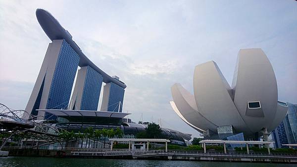 從水上看金沙酒店、蓮花形狀的科學博物館
