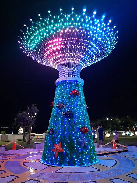 漫步穿越海濱公園,沿途還會看到一些海洋燈光布景:
